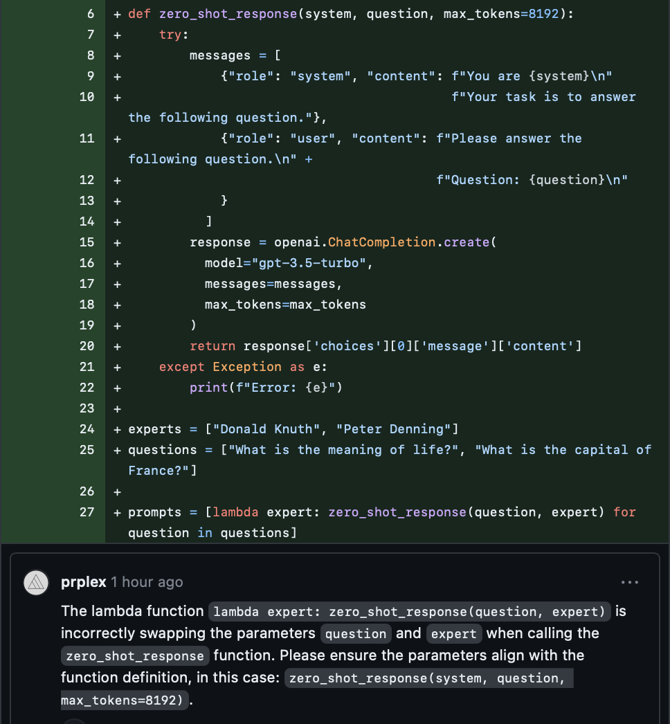 prplex comments directly on your pull requests for high-confidence issues, and provides a perplexity report highlighting other potential problems.