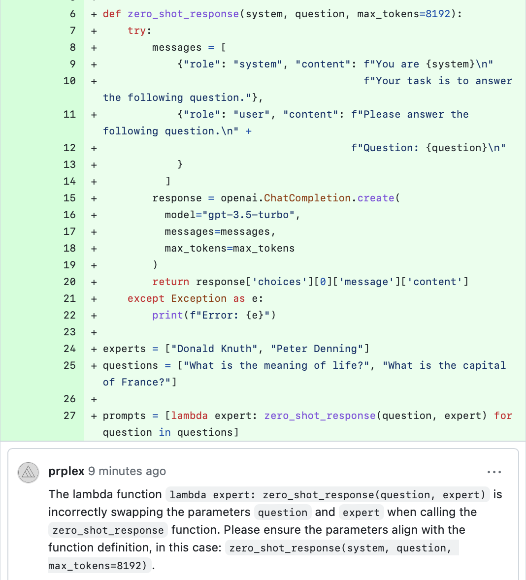 prplex comments directly on your pull requests for high-confidence issues, and provides a perplexity report highlighting other potential problems.